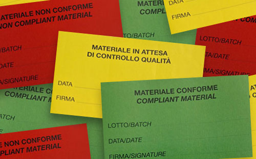 I materiali in ingresso sono immediatamente etichettati in base allo stato di verifica: in attesa, conforme o non conforme. Questo primo filtro è fondamentale per garantire che solo materiali idonei entrino nel ciclo produttivo.