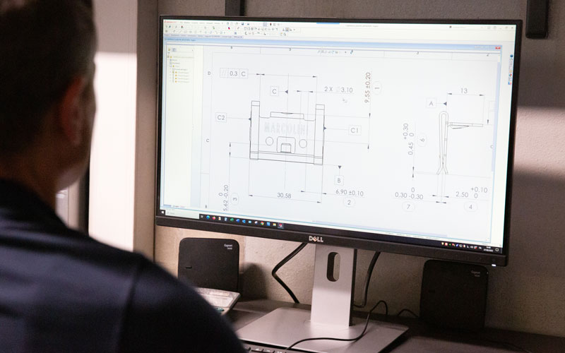 L’azienda dispone di un ufficio tecnico interno dotato di software CAD 3D per la progettazione e la prototipazione, affiancato da un laboratorio attrezzato per l’esecuzione di test fisici approfonditi: prove di trazione, durezza, deformazione, prove distruttive e molto altro.